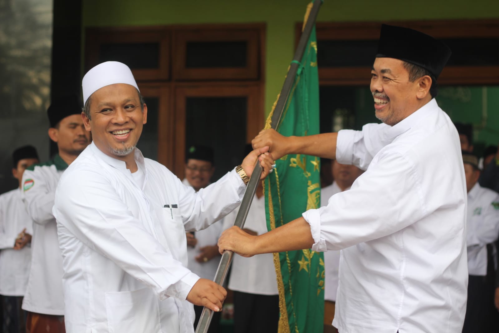 Usai diserahterimakan di Gedung PCNU, bendera diarak dan dikawal iring – iringan motor dan mobil untuk diserahterimakan di MWC NU Jejeg.