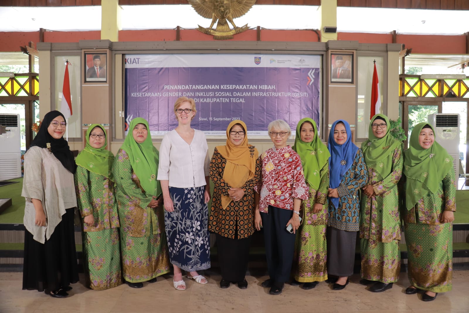 Jumat, 15 September 2023, di Slawi Kabupaten Tegal, Penandatanganan Kesepakatan Hibah Melalui Program Kesetaraan Gender dan Inklusi Sosial dalam Infrastruktur (GESIT) di Kabupaten Tegal