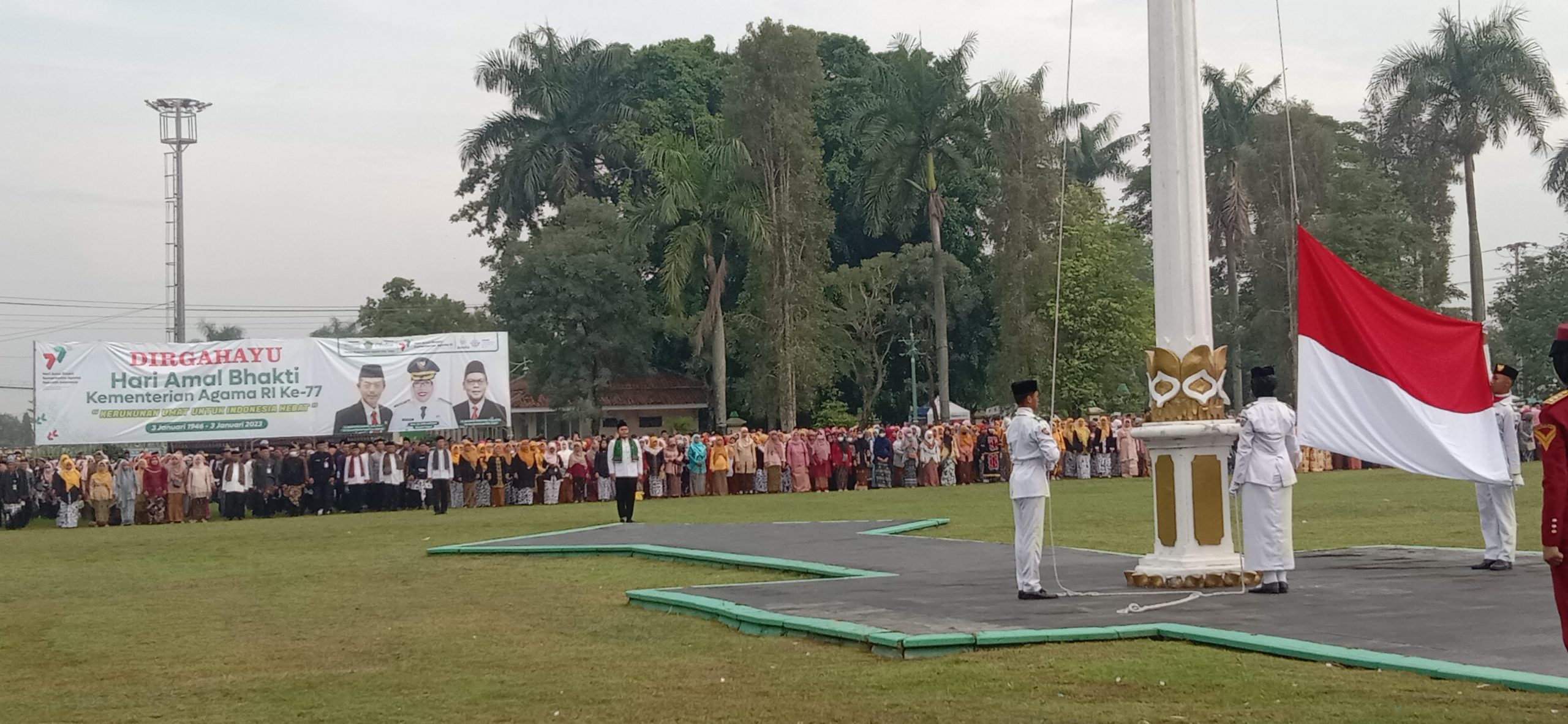 Upacara yang diselenggarakan oleh Kantor Kementerian Agama Kab Tegal tersebut diikuti oleh 7777 peserta yang berasal dari seluruh jajaran pegawai kemenag, serta para guru madrasah dan guru Taman Pendidikan Al Quran (TPQ) se-Kabupaten Tegal.