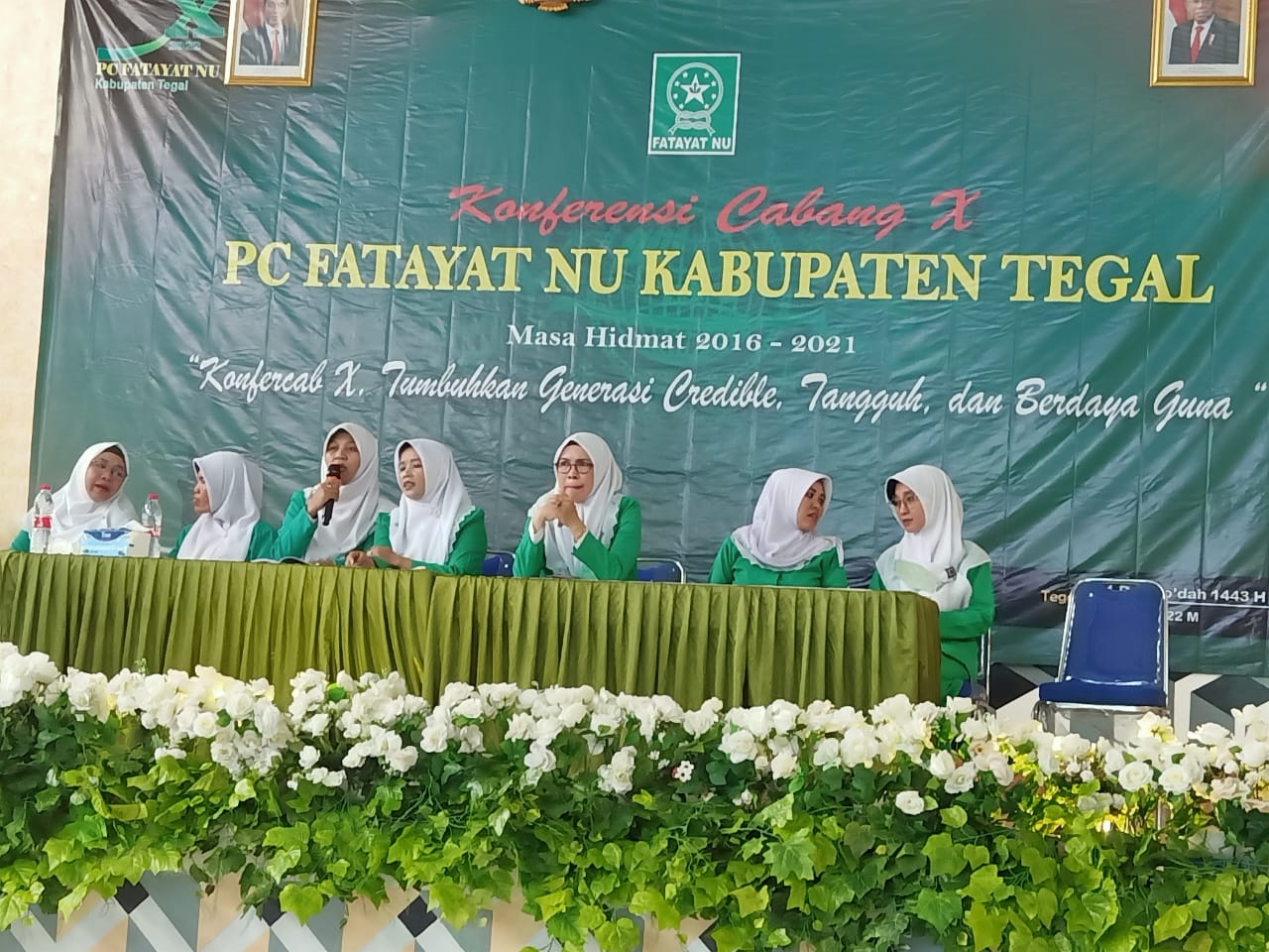 Pimpinan Cabang (PC) Fatayat NU Kabupaten Tegal menggelar Konferensi Cabang X pada pada Selasa (21/6) bertempat di Gedung Serba Guna Jatidiri Desa Dukuh Jati Kecamatan Kedung Banteng. Acara yang mengusung tema Menumbuhkan Generasi Kredibel, Tangguh dan Berdayaguna ini diselenggarakan setelah mundur 1 (satu) tahun akibat pandemi covid-19.
