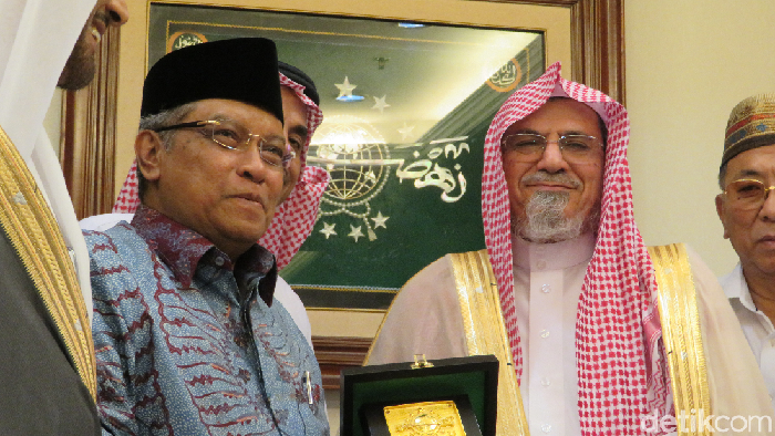 Pada kunjungan tersebut, Syaikh Sholeh bin Abdullah bin Humaid disambut segenap pengurus harian Pengurus Besar Nahdlatul Ulama (PBNU). Tampak hadir Rais Syuriyah KH. Subhan Ma’mun, Ketua PBNU H. Eman Suryaman, KH. Abdul Manan Ghani, Sekjen PBNU H. Helmy Faisal Zaini, Bendahara Umum H. Ing. Bina Suhendra. (Syaroni As-samfuriy/NU Online)