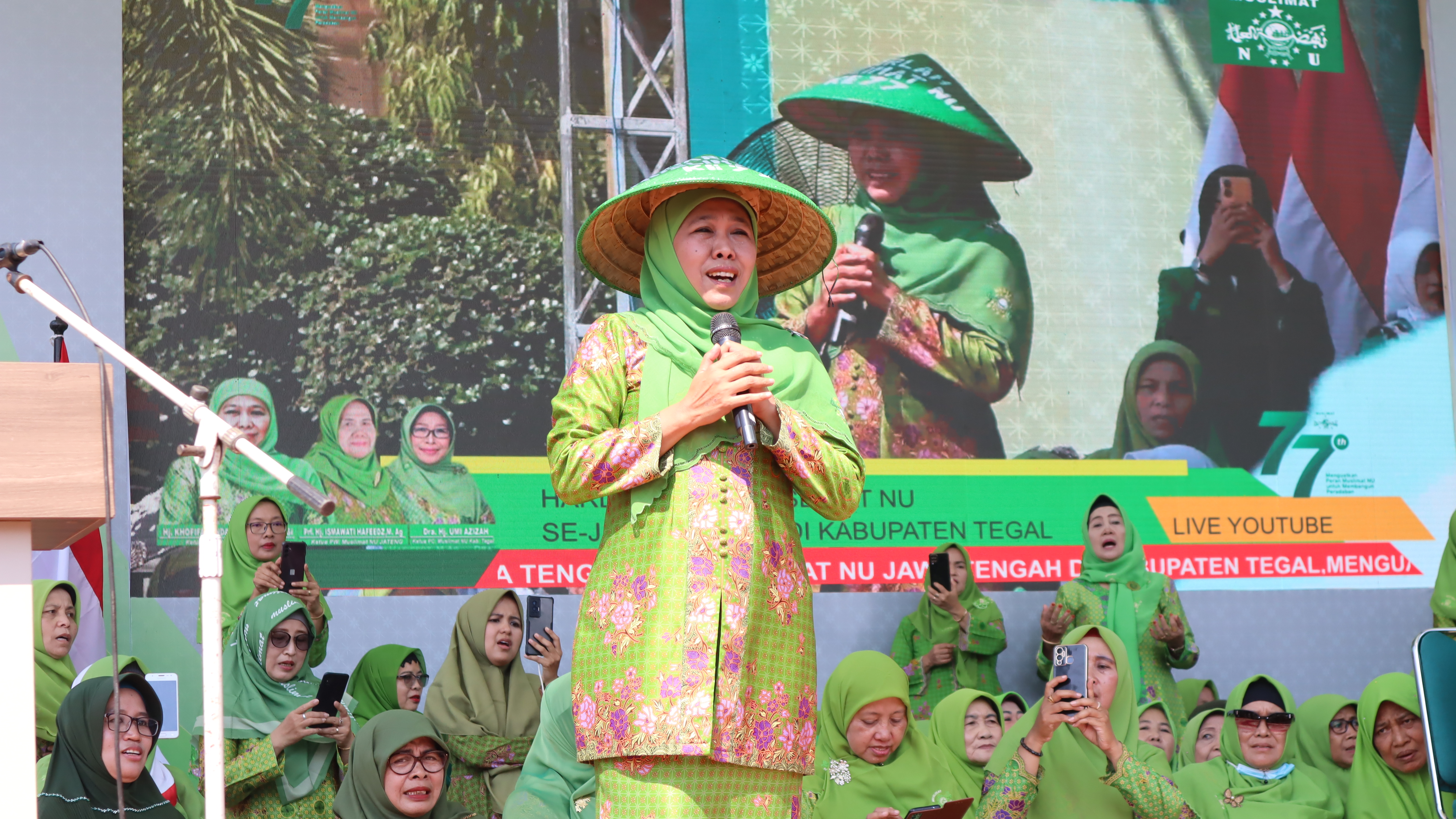 Slawi, NU Tegal_Ketua PC Muslimat NU Kabupaten Tegal Hj Umi Azizah mengaku senang melihat antusiasme anggota Muslimat dalam merayakan Hari Lahir (Harlah) ke-77 tahun Muslimat NU tingkat Jawa Tengah, Sabtu (20/6/23). Umi yang juga Bupati Tegal itu memaknai acara harlah…