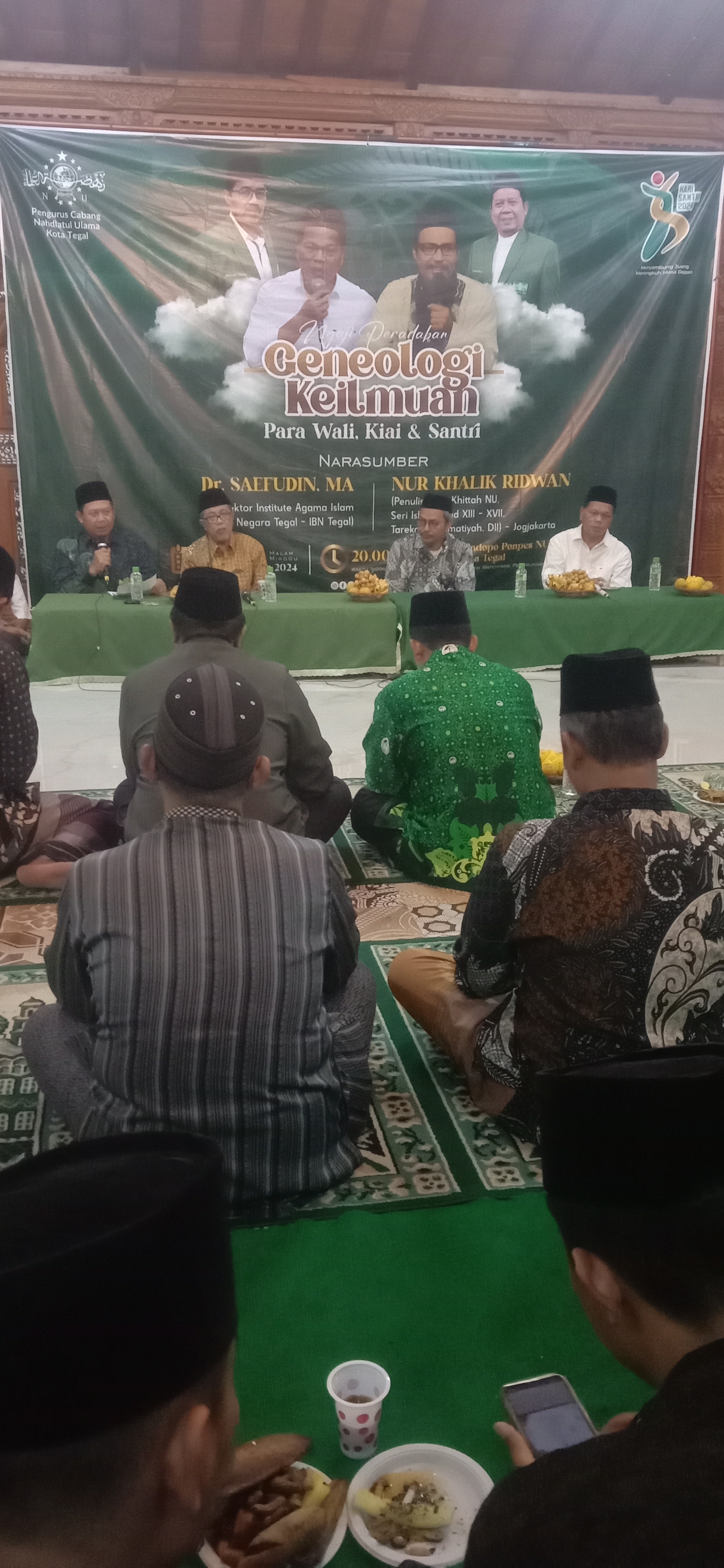 Tegal_NU Tegal- Jajaran Pengurus Cabang Nahdlatul Ulama (PCNU) Kota Tegal menggelar diskusi ilmiah bertajuk Ngaji Peradaban dengan tema Geneologi Keilmuan Para Wali, Kiai dan Santri. Kegiatan tersebut bertempat di Pendopo Pondok Pesantren NU Kota Tegal di Pesurungan Lor, Sabtu (9/11).…