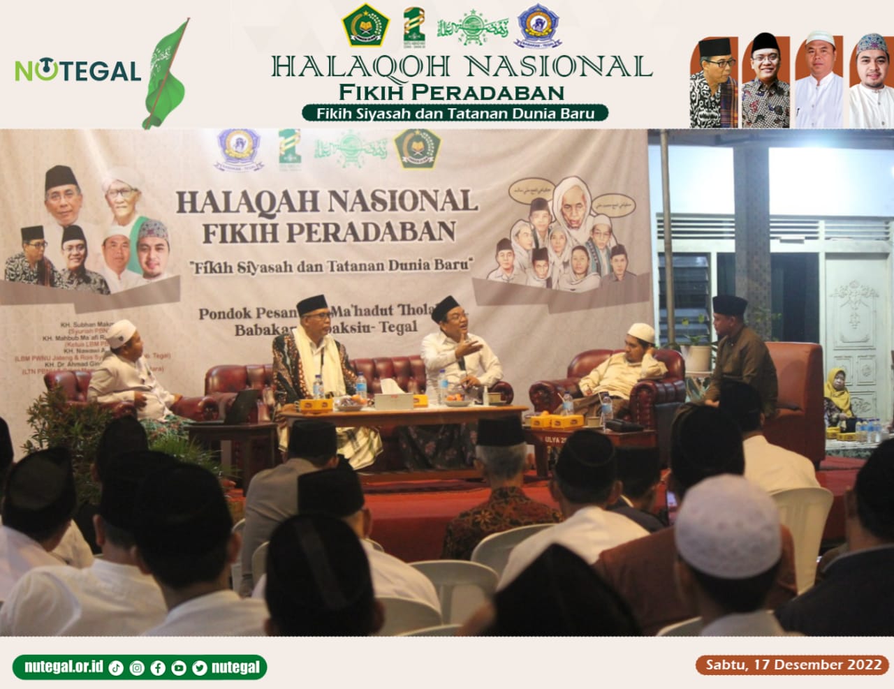 Pengurus Besar Nahdlatul Ulama (PBNU) menggelar Halaqoh Nasional Fikih Peradaban dengan mengusung tema “Fikih Siyasah dan Tatanan Dunia Baru” di Pondok Pesantren Ma’hadut Tholabah Babakan, Kecamatan Lebaksiu, Kabupaten Tegal, Sabtu malam (17/12).
