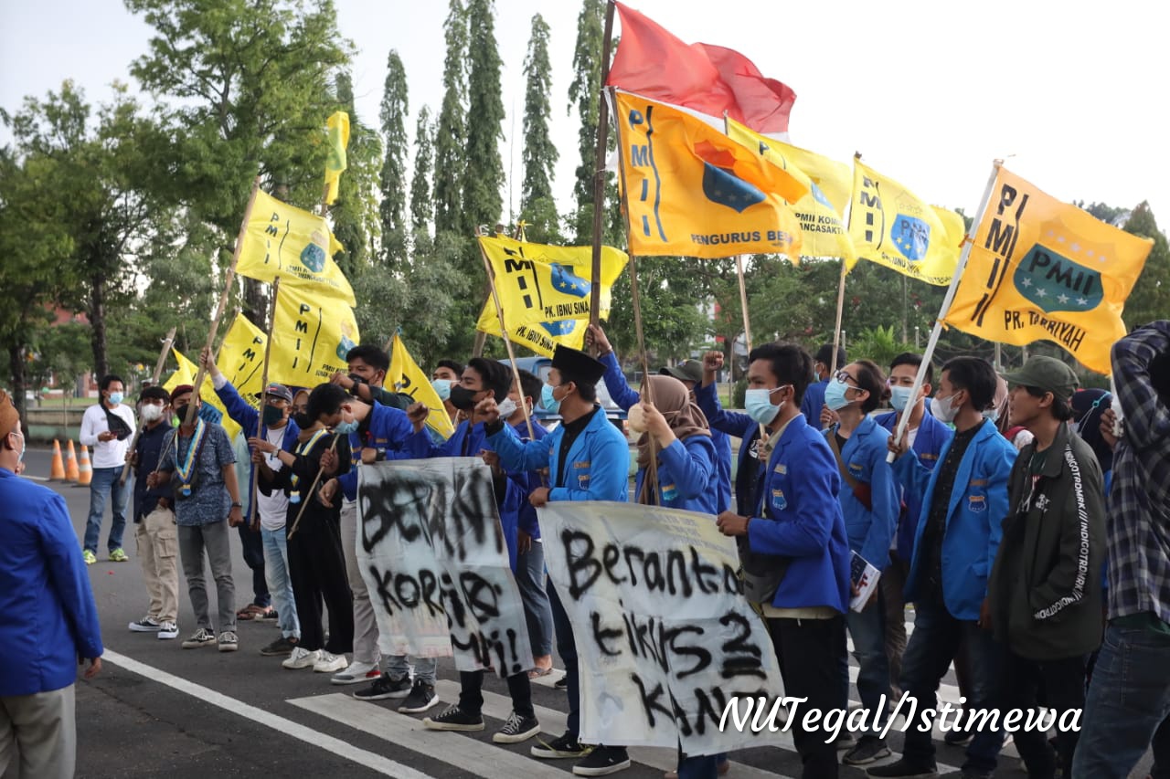 Peserta aksi berjalan dari titik kumpul di sekretariat PC PMII Tegal procot, Slawi, Kabupaten. Tegal pada pukul 13.00 WIB.