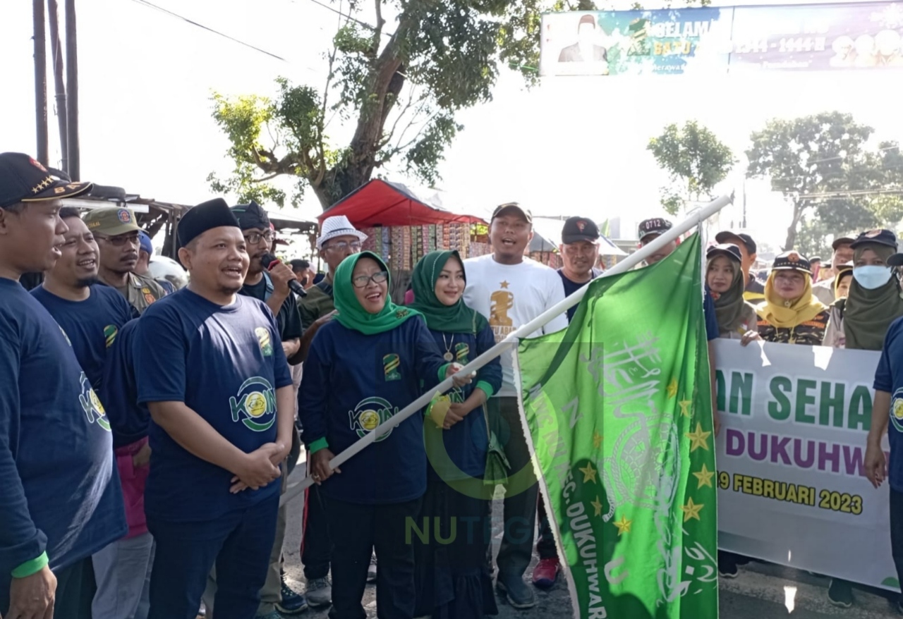 Peserta jalan sehat dilepas secara resmi oleh Bupati Tegal Hj Umi Azizah dari titik start di SMP Ma’arif NU Dukuhwaru. Turut mendampingi Bupati Tegal, Sekretaris PCNU Kabupaten Tegal Ryan Saeful Rizal, Anggota DPRD Kabupaten Tegal Jafar dan Umi Azkiyani, Kepala Dinas Dikbud Kabupaten Tegal H Akhmad Was’ari, Forkompincam Dukuhwaru, dan Pengurus MWCNU Dukuhwaru.